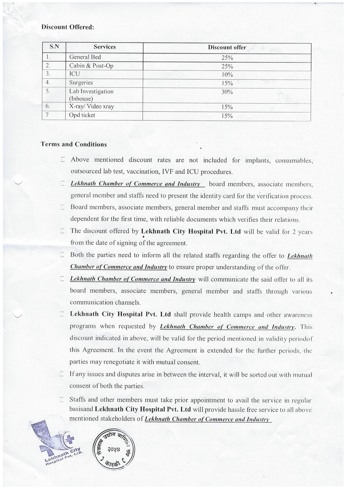 लेखनाथ उद्योग वाणिज्य संघका सदस्य तथा सदस्यका आश्रितहरूका लागि स्वास्थ्य उपचारमा विशेष छुट सुविधा उपलब्ध हुने भएको छ। संघको सदस्यता परिचयपत्रका आधारमा लेखनाथ सिटी हस्पिटल प्रा.लि., पोखरा महानगरपालिका–२६, बुढ़ीबजार ले आगामी दुई वर्षका लागि विभिन्न स्वास्थ्य सेवा शीर्षकहरूमा छुट प्रदान गर्ने व्यवस्था गरिएको हो।